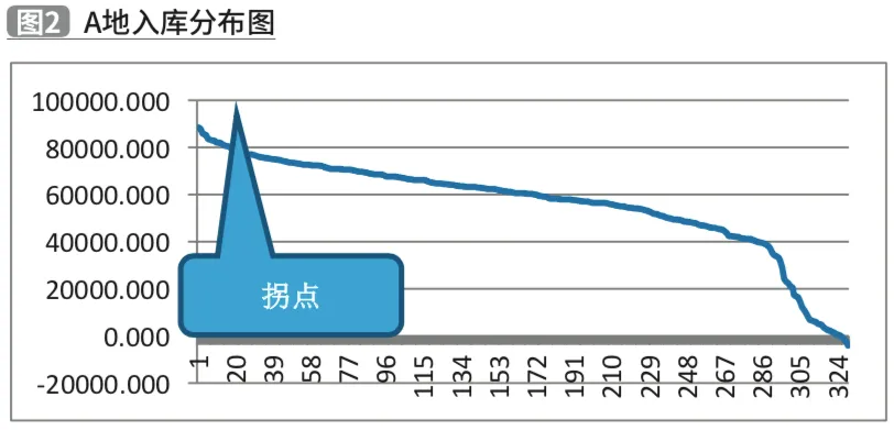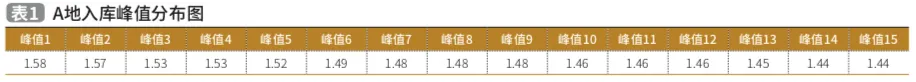A地厂区的日均入库量56045.6箱,最大入库量88581箱,A地入库峰值前15如表1。