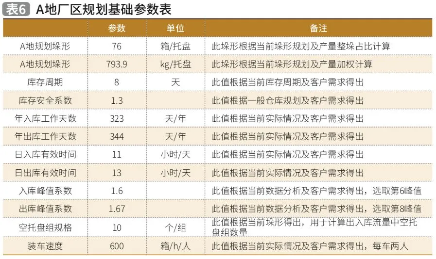 根据数据分析和当前实际情况以及客户需求得出立体仓库设计基础数据(如表6)。