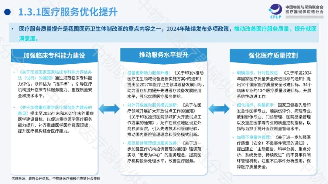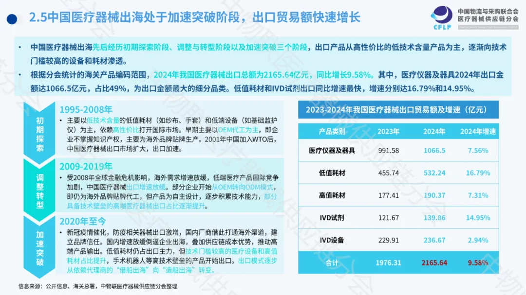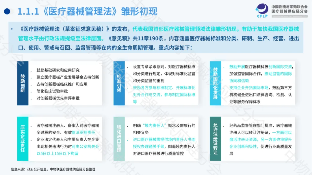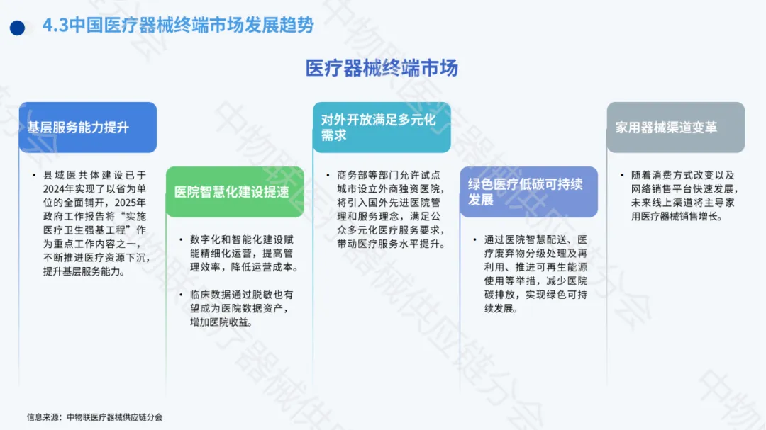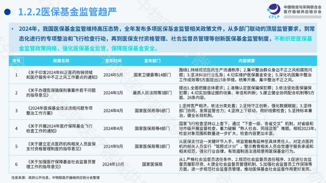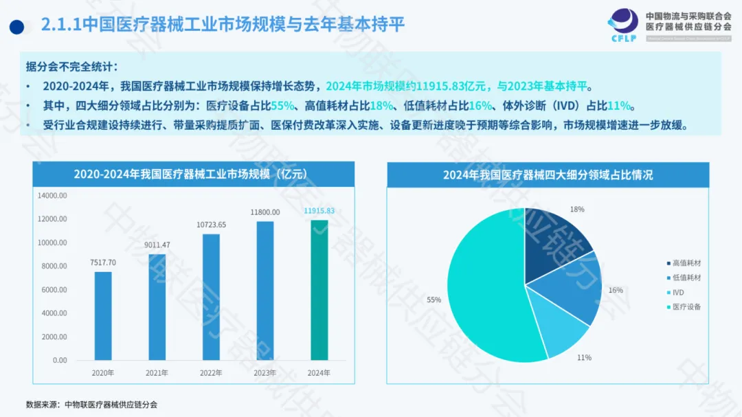 本报告通过对医疗器械供应链宏观政策环境进行解读分析,并对医疗器械供应链各环节、各细分领域开展了多方面、多维度的深度研究,对发展现状及面临的挑战进行了真实、客观的总结与分析,并对2025年行业发展作出了预判和展望,以期为医疗器械行业提供决策参考和经验借鉴。以下为本报告重点内容解读