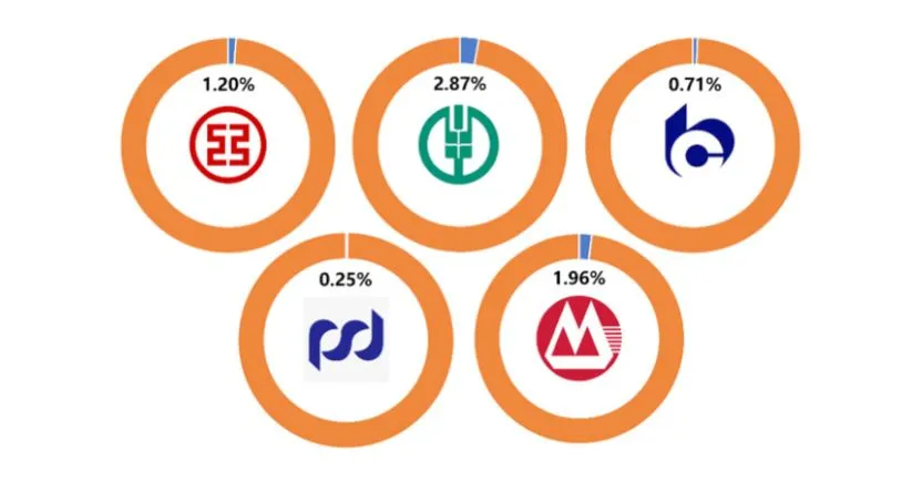 图3:2018年五家大型商业银行住宿餐饮贷款额占总贷款额的比例