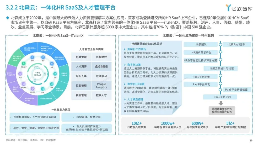 人力资源数字化已从“上云”走向“上算法”,谁先掌握员工行为数据主权,谁就拥有劳动力定价权。报告显示,2025年HR SaaS渗透率达68%,其中AI面试、劳动力预测算法模块的付费率两年翻3倍,头部客户平均缩减22%招聘周期,却将员工“数字孪生”数据留存期延长至5年。