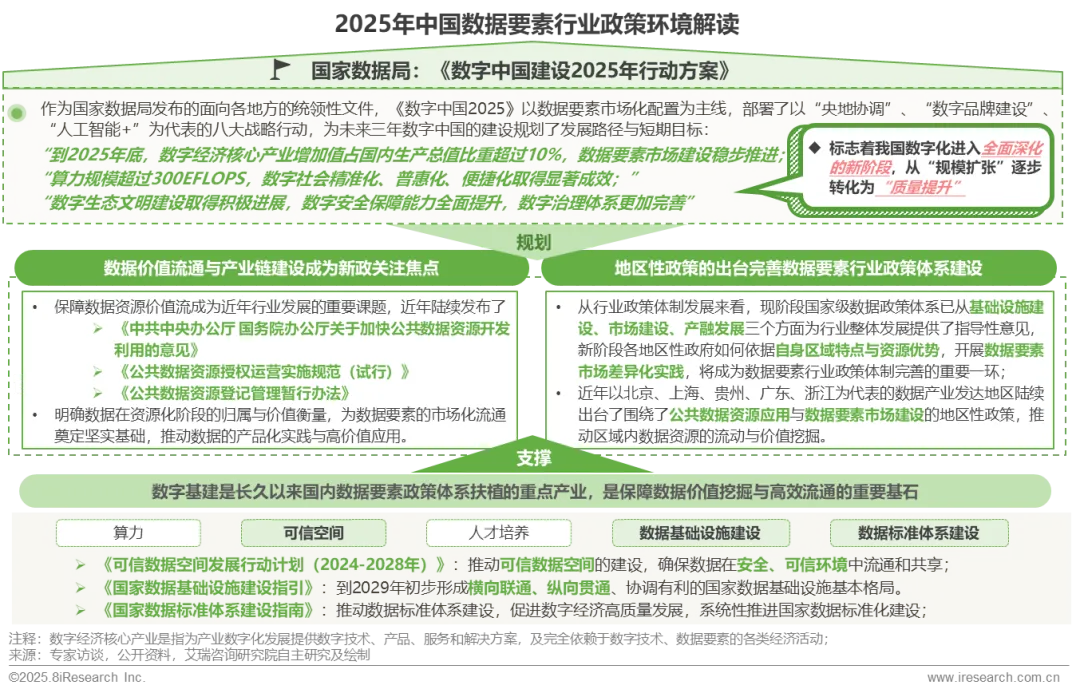 在政策指导与产业建设的共同作用下,以数据、科技与基建为核心的数据要素市场体系逐步完善,推动行业向更高价值的“政产联动”迈进