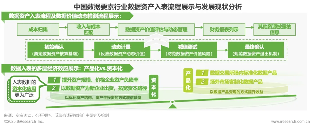 数据资产入表是数据要素资本化实践的核心环节,也是近年国内数据要素市场关注的热门话题。自2024年1月1日起,《企业数据资源相关会计处理暂行规定》的实施标志着我国数据资产入表正式迈入制度化新时代,在完成数据资源盘点、合规审查与价值评估之后,按照会计处理的要求将数据资源以无形资产、开发支出、存货等形式计入财务报表,实现数据资源从“隐性资产”向“显性资产”的转化,在改善资本负债结构、提升企业融资增信方面效果显著,是奠定数据资本化运作的重要环节。自2024年起上市企业新增数据入表数量逐步提升,涉及包括信息传输、软件和信息服务、制造业、金融业等多个领域,企业的数据治理与场景深化能力进一步提升。从入表资产登记的使用场景来看,对外提供的产品或服务、内部降本增效与AI大模型的开发成为三大主流应用场景,而选择在数据交易所产品登记、上架的企业比例不高,整体交易流通的活跃度不达预期。目前市场对于入表数据资产的资本化应用程度远高于最初设想的产品端应用,如何管理数据资产资本化风险、推动数据产品市场发展将成为新阶段的重要课题。此外,在“强制披露+资源披露”的要求下, 业内数据入表信息的披露标准仍存在差异,业务模式相近的企业对于类似资源的数据资产处理方法不同,导致彼此间数据资产价值的可比性分析难度较大,数据资产入表的细节问题仍需期待相关政策与行业标准的完善。