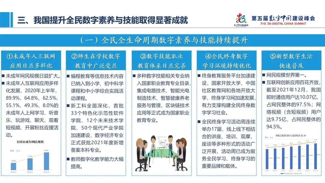 近年来,我国提升全民数字素养与技能取得显著成就,主要体现在: