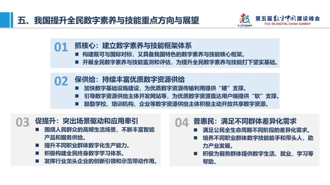 第五届数字中国建设峰会“跨越数字鸿沟:全民数字素养与数字乡村分论坛”在福建省福州市成功举办。论坛期间,国家工业信息发展研究中心总工程师黄鹏代表报告编制组发布了《全民数字素养与技能发展研究报告》,这是2022年全民数字素养与技能提升月的重点活动之一。本文对我国全民数字素养与技能情况进行了分析和展望,一起来看看吧。