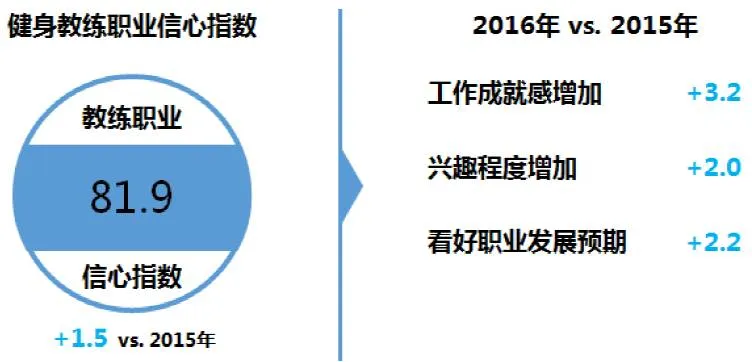 继2015年之后尼尔森再次发布健身教练职业信心指数。2016年健身教练职业信心指数为81.9分(100分制),健身教练对于目前的职业的主要顾虑仍然是工作的压力。