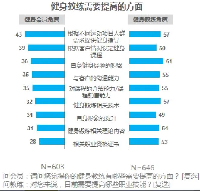 对于健身教练需要提升的方面,会员认为教练需要提供个性化的服务,针对性地提供指导和课程安排。而健身教练更看重自身的经验积累。健身会员对于职业资格证书的重视程度并不高。