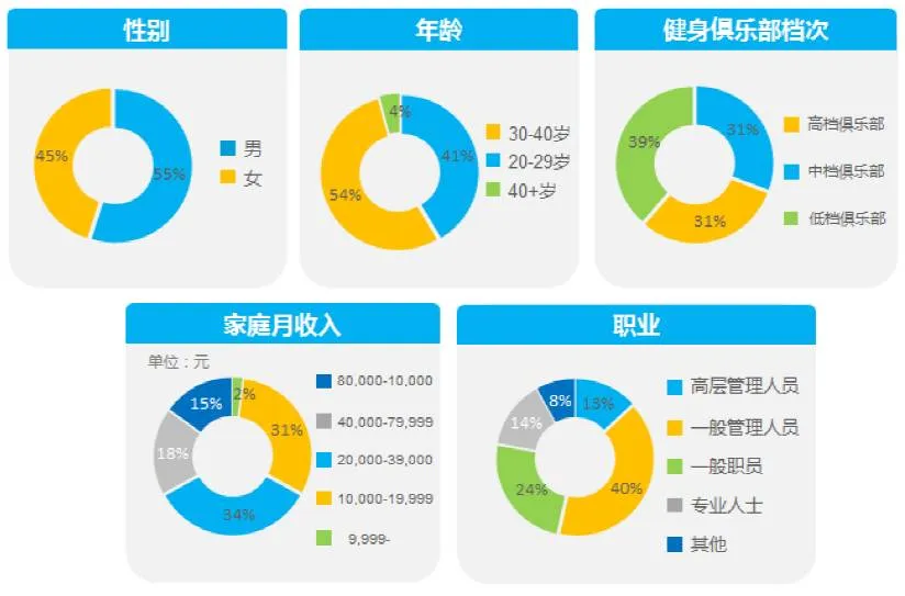 从健身会员的职业来看,超过一半的人在公司/单位当中属于的中高级别的管理层人员,还有14%的人属于专业人士(如律师/医生/技术人员等)。