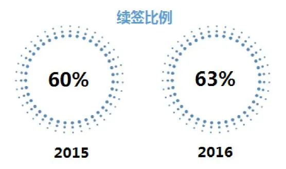 这一次调研的健身教练的平均续签率为63%,比2015的调研结果(60%)略有提升。