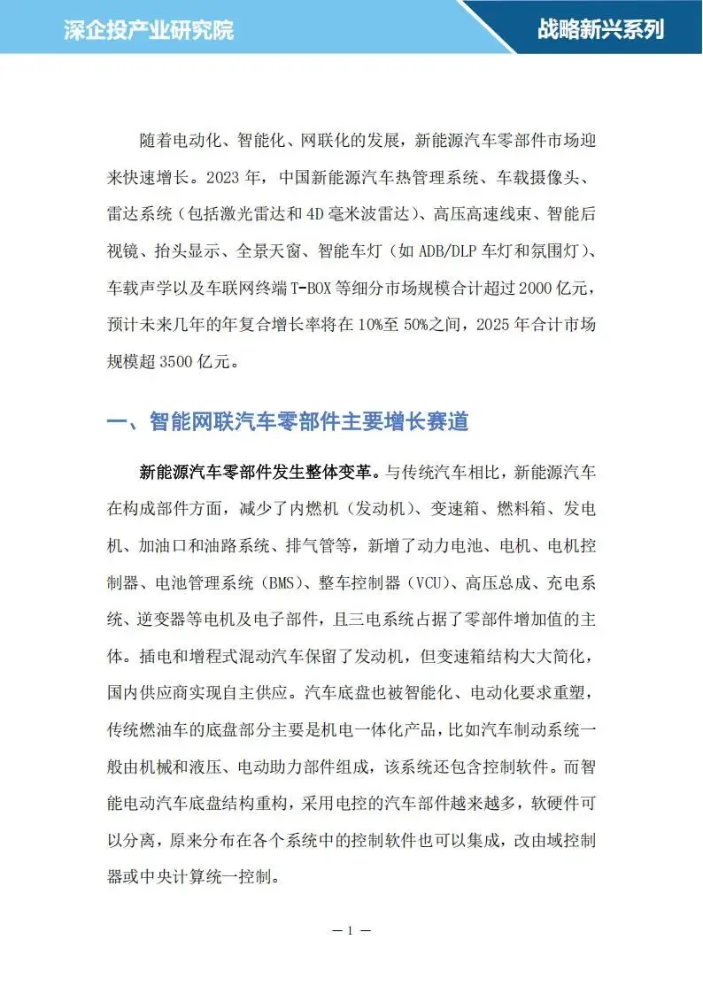 《智能网联汽车零部件行业研究报告》由深企投产业研究院发布,深入剖析了智能网联汽车零部件行业的发展现状、市场格局及未来趋势。