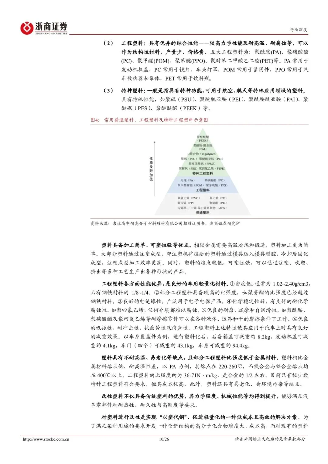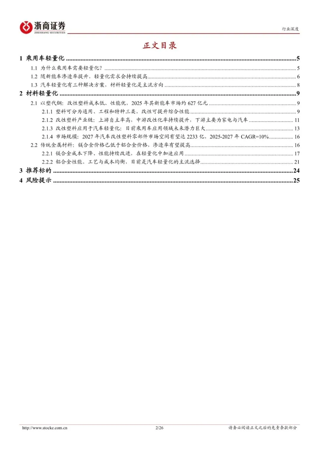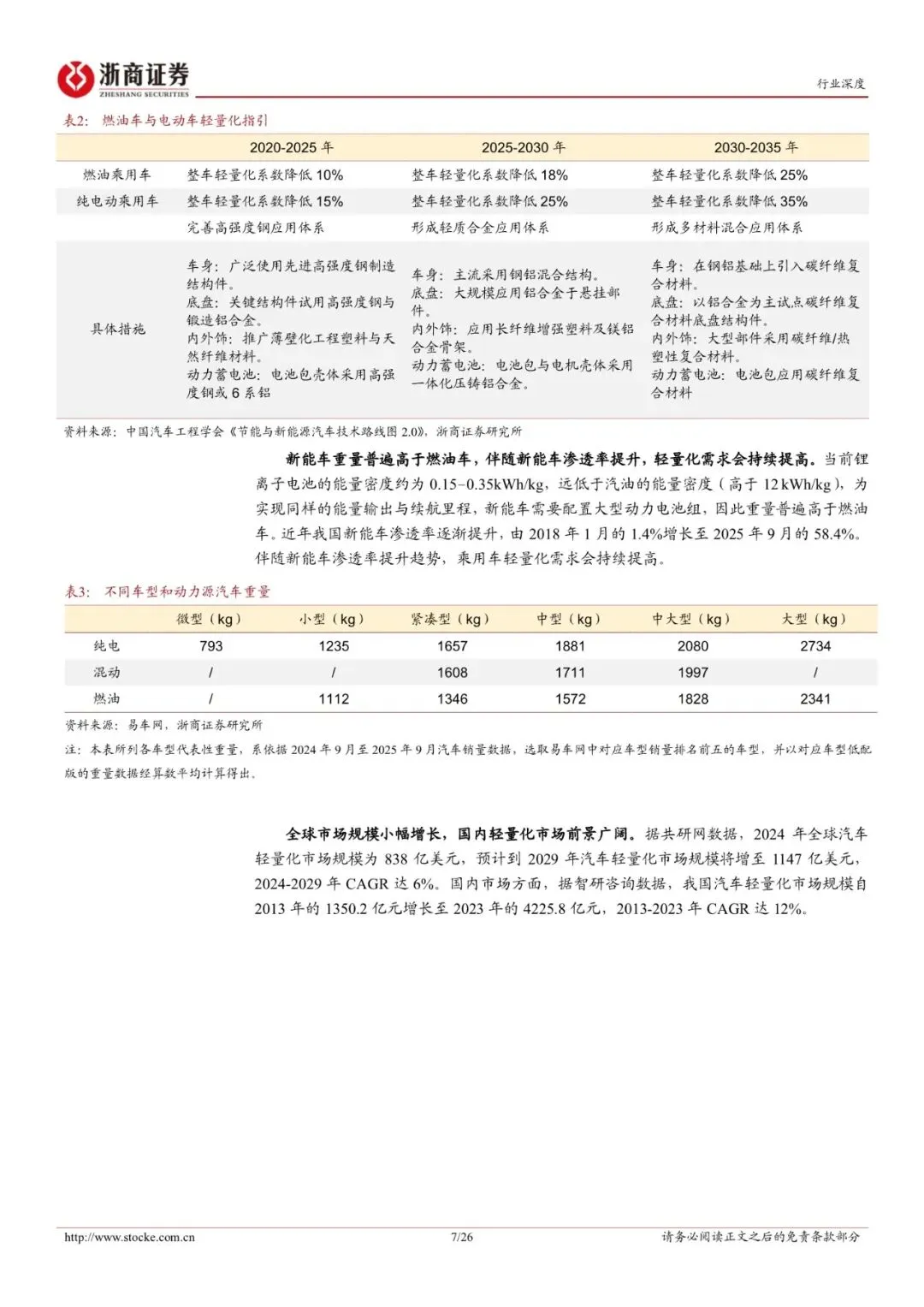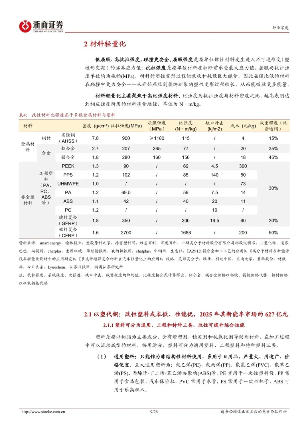 乘用车轻量化:乘用车轻量化持续推进,材料轻量化是主流方向。1、政策与性能需求双重驱动,乘用车轻量化大势所趋。2、材料轻量化是当前主流方向。3、市场规模:全球市场规模小幅增长,国内轻量化市场前景广阔。以塑代钢:改性塑料密度更低、比强度更高,是理想的汽车轻量化材料。
