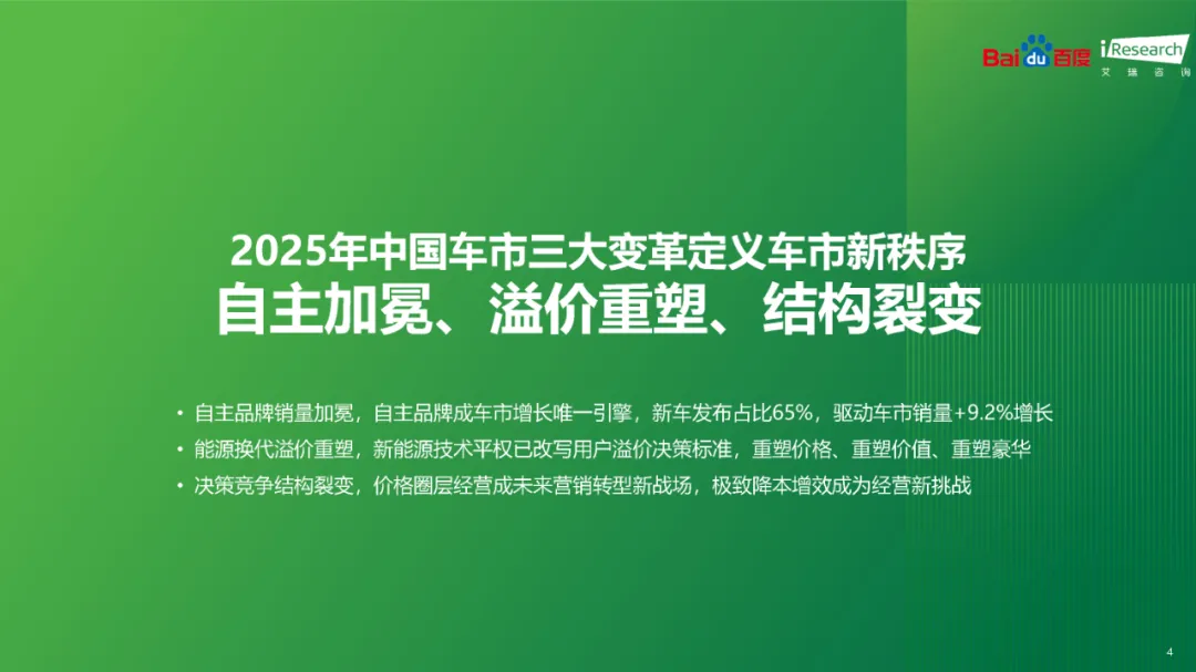 在快速变革的汽车行业中,每一次技术革新与市场动态都牵动着业界的神经。《2025年汽车行业研究报告》由艾瑞咨询精心打造,不仅深刻剖析了当前汽车市场的格局变迁,还前瞻性地展望了未来趋势。本报告以详实的数据、深入的分析,揭示了自主品牌崛起、新能源技术普及、消费者行为变化以及AI技术在汽车营销中的创新应用等核心议题,为汽车行业的参与者提供了宝贵的洞察与决策依据。