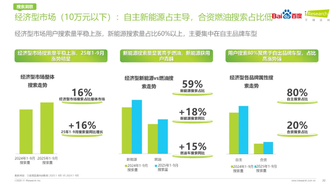 数据亮点:新能源技术的规模化应用与成本下降,使得2025年各价位区间市场迎来“性价比重构”。新能源车型在30万以下市场成为核心增量板块,产品价值彻底取代品牌符号,成为用户决策的关键因素。