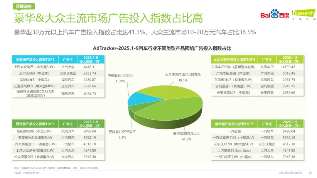 报告特别强调了AI技术在汽车营销领域的革命性应用。百度作为全球最大中文搜索引擎,通过AI内化升级,全面重塑了搜索交互体验与内容创作生态。AI搜索引擎不仅提升了用户搜索效率与满意度,还通过AIGC(人工智能生成内容)技术大幅降低了内容创作成本。此外,百度还构建了智能化的汽车营销体系,通过AI品牌流量阵地、AI内容矩阵生态以及AI经销商转化体系等创新模式,助力车企更好承接用户需求,实现营销效果的最大化。AI技术的深度融入,正逐步改变着汽车营销的游戏规则。
