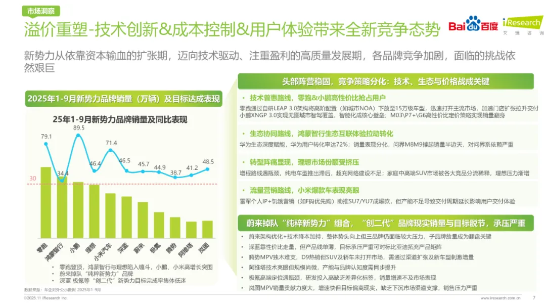 新能源技术的规模化应用与成本下降,是2025年汽车市场的另一大亮点。报告显示,新能源技术的普及彻底重构了各价位区间市场的性价比,产品价值逐渐取代品牌符号成为用户决策的关键因素。特别是在30万以下的核心增量板块,新能源车型凭借其高性价比优势,赢得了市场的广泛认可。这一变革不仅推动了新能源市场的快速发展,也促使合资/豪华品牌通过降价策略来应对市场挑战,但效果有限,产品价值取代品牌符号的趋势已不可逆转。