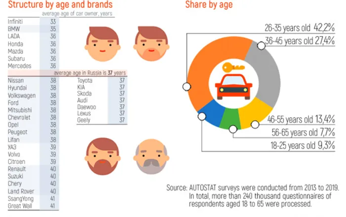 俄罗斯汽车车主年龄结构与品牌分布