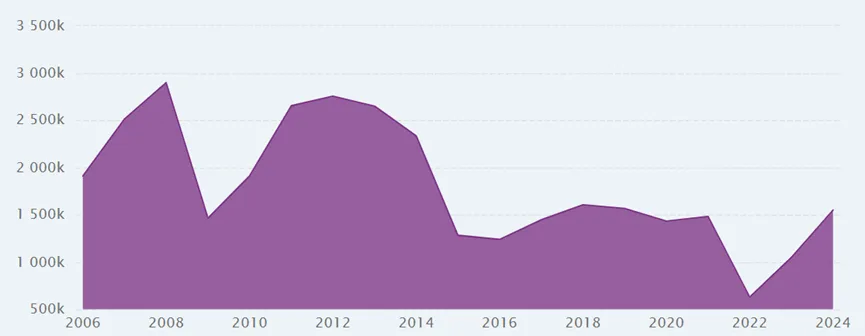 2006-2024年俄罗斯乘用车销量