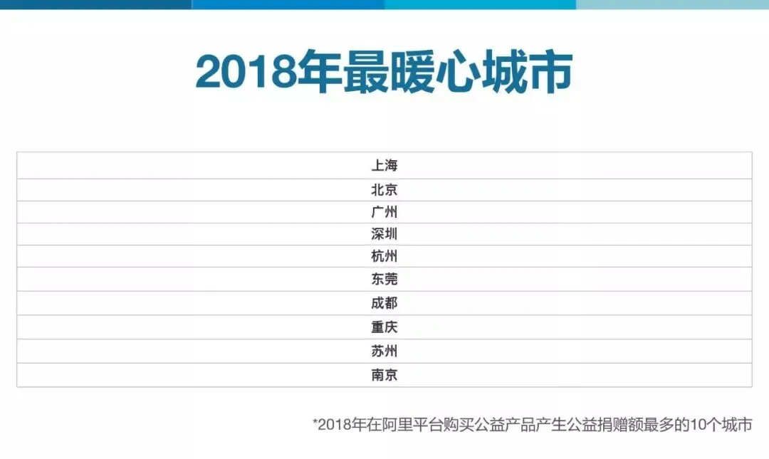19、最有爱心城市(阿里平台公益宝贝捐赠额top 10城市)