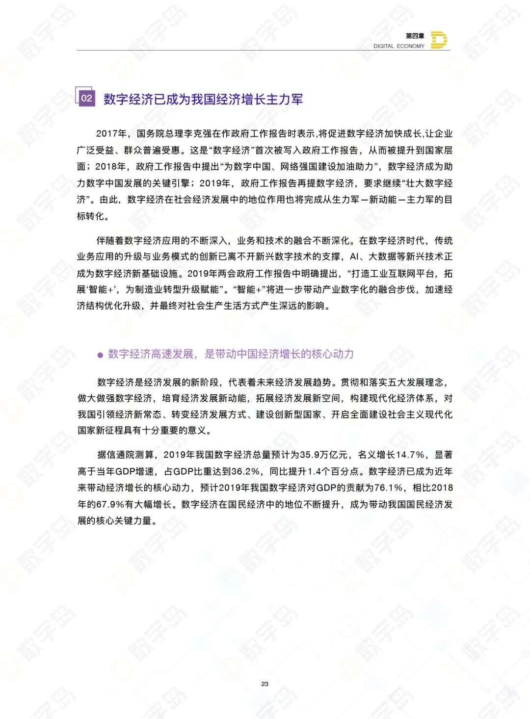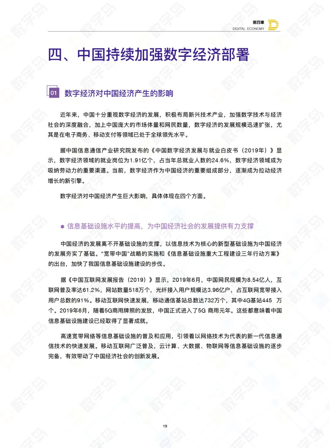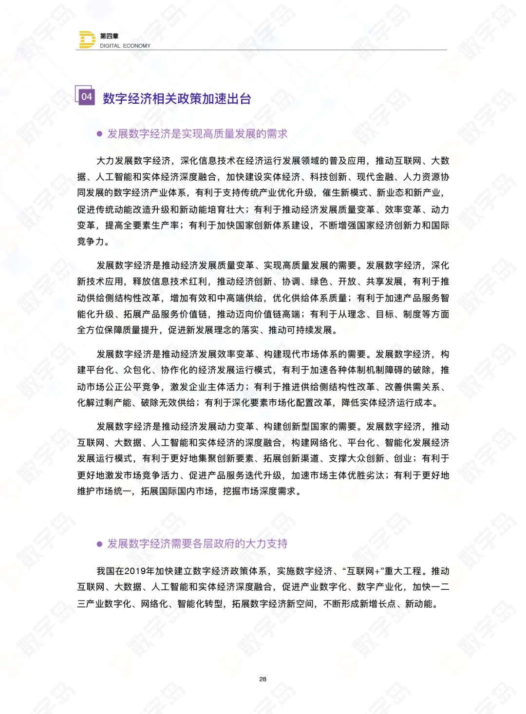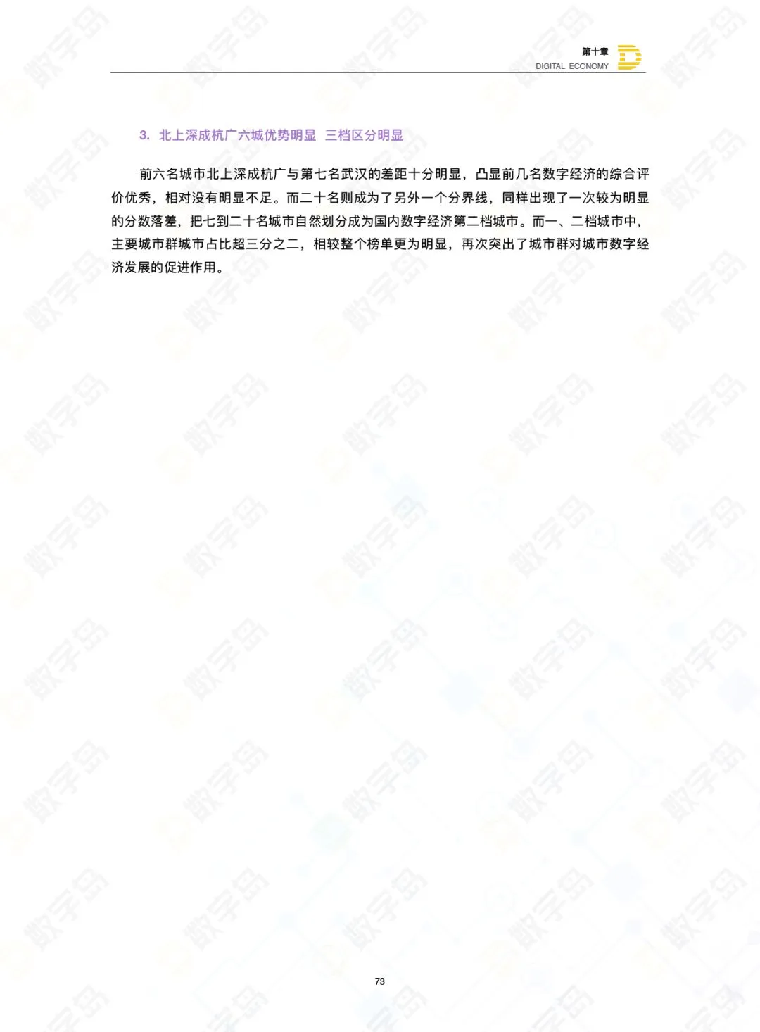 点击上方文字“信息化协同创新专委会”关注我们 数字经济发展研究小组、中国移动通信联合会区块链专委会、数字岛研究院共同编写的《2019-2020中国城市数字经济发展报告》正式发布,该报告总计十大篇章,从国际到国内,从政策到应用,覆盖数字经济的两大分类:数字产业化及产业数字化,以城市为切入点,以国内近300个地级及以上城市为考查目标,通过五大维度,二十余个细分指标,综合考查国内城市数字经济发展现状。