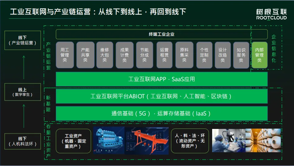 树根互联作为被全球广泛认可的国际化工业互联网赋能平台公司,在新基建时代,提出了“从线下到线上,再回到线下”的工业互联网与产业链运营逻辑模型。