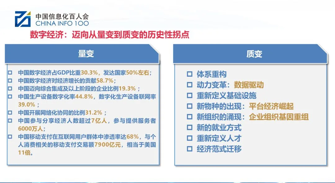2. 中国数字经济正处于从量变到质变的关键节点上;