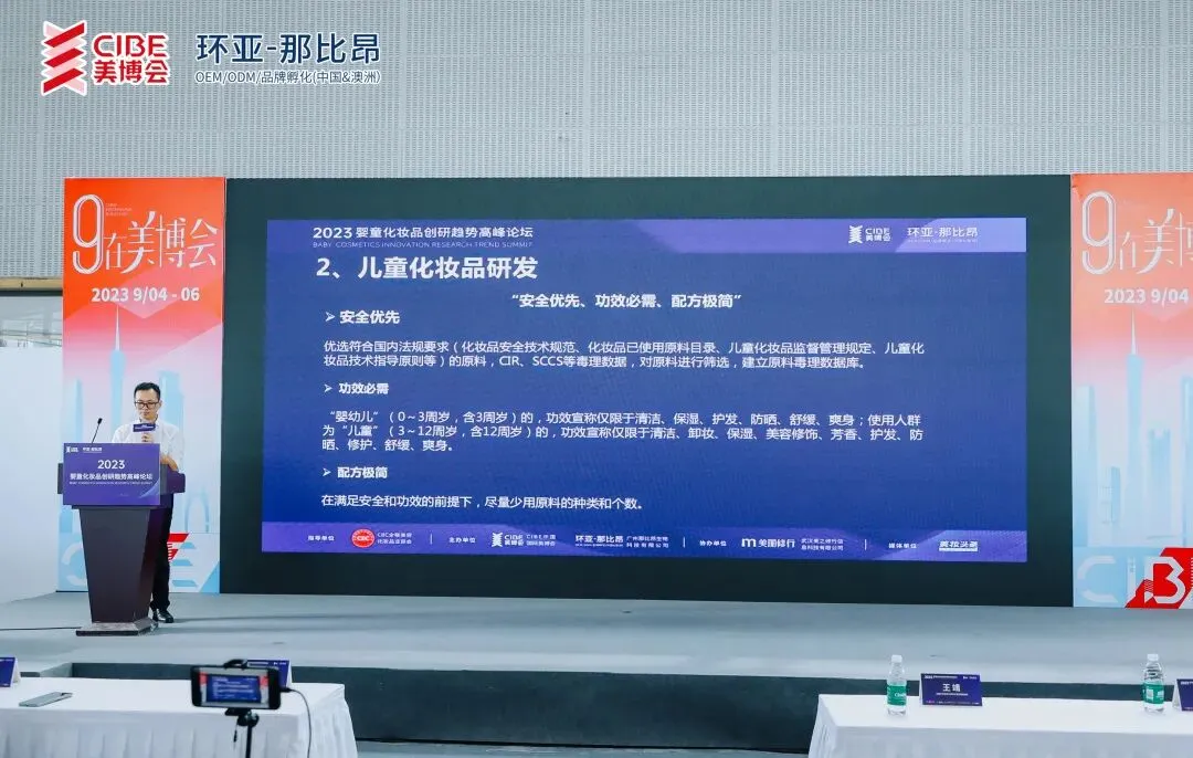 9月4日,由全国工商联美容化妆品业商会指导,CIBE中国国际美博会及环亚-那比昂联合主办,美丽修行协办,《美妆头条》新媒体支持的“2023婴童化妆品创研趋势高峰论坛”(以下简称:高峰论坛)在广州琶洲广交会展馆成功举办。