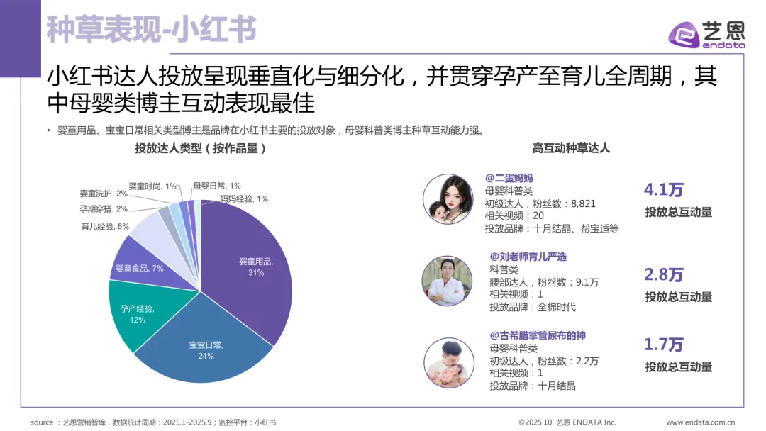 小红书则以垂直领域的母婴博主为主,侧重科普知识、经验分享与成分解析,帮助用户完成深度决策。品牌需依据平台特性布局内容,实现广度覆盖与深度说服的结合。