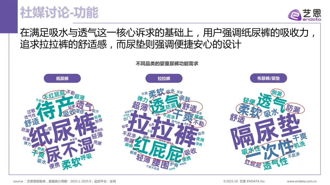 用户对产品的关注点集中在功能与体验两大维度。基础诉求以“轻薄透气”“不红屁屁”为核心,材质上“纯棉”“A 类母婴标准”等安全标签受到广泛青睐。