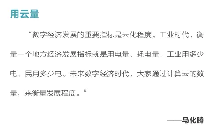 对于云计算的重要性,腾讯董事会主席兼首席执行官马化腾多次表示,数字经济发展的重要指标是云化程度,未来数字经济时代,将通过计算云的数量,来衡量发展程度。