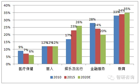 婴童服务市场方面,随着消费者需求的升 级,对于服务的诉求逐渐提高,至2020年, 婴童服务市场增速将维持在17%左右。在服 务的各项子品类中,由于国内消费者对于子 女教育重视程度较高,教育长期以来占据婴 童服务市场较大份额,且预计短期内仍将保 持一定增长,到2020年约占服务市场份额的 35%。其他服务子品类方面,医疗保健、丽 人服务目前普及程度较低,未来增长潜力同样较大。