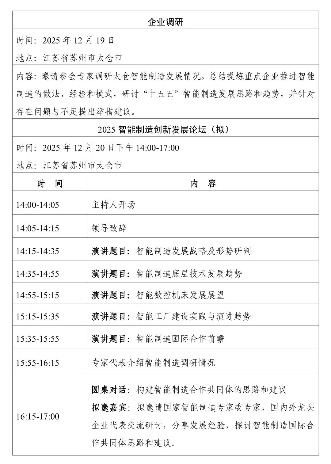 为深入贯彻落实党中央、国务院决策部署,加快推进制造业数字化转型、智能化升级,工业和信息化部装备工业发展中心拟于2025年12月19—20日在江苏省太仓市举办2025智能制造创新发展论坛,邀请国家智能制造专家委专家、企业家交流“十五五”智能制造发展趋势,探讨智能制造国际合作共同体构建思路,为系统深入推进智能制造贡献智慧力量。有关情况通知如下: