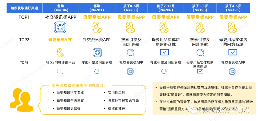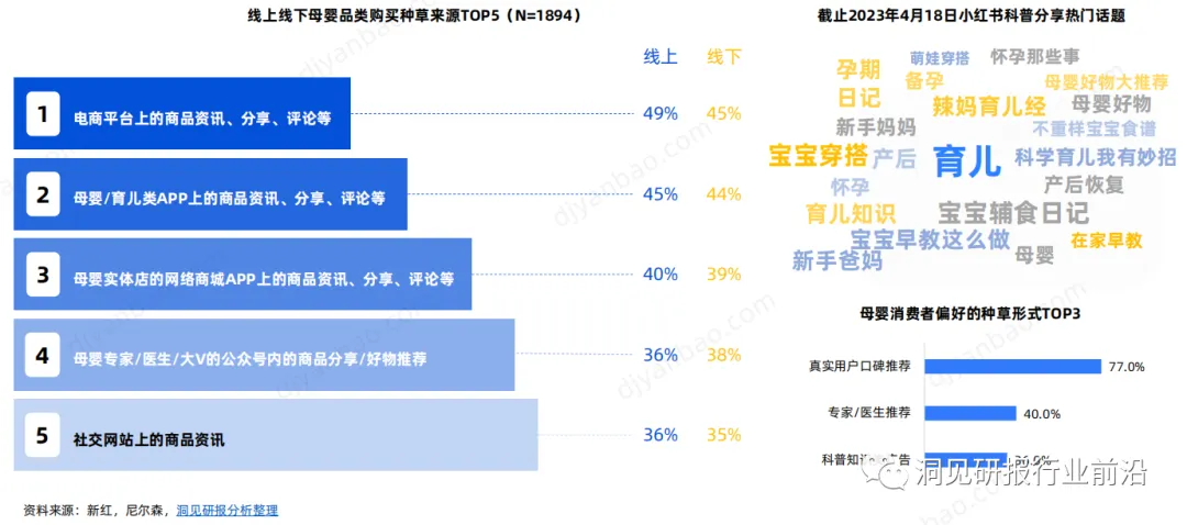 宝爸宝妈们在做出消费决策前,青睐于对比综合电商平台信息及评论或参考专业母婴APP中相关产品的口碑分享与种草推荐。