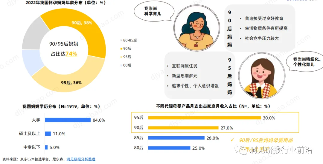 • 90/95后育儿观念转变引领孕婴童行业朝新发展:90/95后已逐步成为孕婴童行业的消费主力军。相比上一辈父母,他们更热衷于通过网络攻略获得和分享知识和经验,更注重个性的养育方式,并且伴随整体消费水平的提高,科学和精致化育儿已经逐渐成为现下带娃的主流趋势。这种趋势正在推动孕婴童行业向细分和高质量发展。
