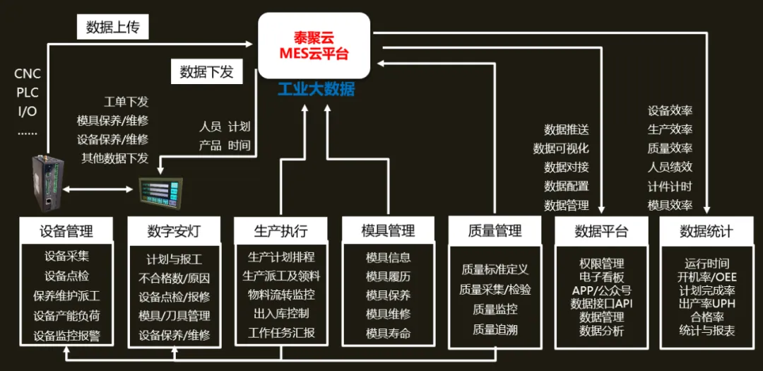 作为智能制造领域的专业解决方案服务商,泰聚云长期致力于为制造企业提供智能工厂改造服务,并自主研发了以MES为核心的智造云平台。该平台可为工厂提供从设备采集、运行状态的监控以及设备维护管理;计划排程,计划订执行过程透明跟踪,物料拉动、流转及库存控制,产品质量采集、不良分布分析以及质量全程追溯管理等,平台对整个生产制成过程的全流程管理及控制,在帮助企业降本增效、提升产能方面发挥了重要作用。