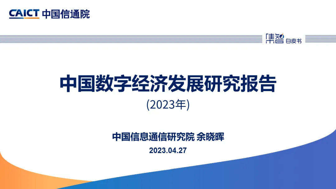 2023年4月27-28日,由国家互联网信息办公室、国家发展和改革委员会、科学技术部、工业和信息化部、国务院国有资产监督管理委员会和福建省人民政府共同主办的“第六届数字中国建设峰会”在福建省福州市召开。在4月27日下午的主论坛上,中国信息通信研究院(简称“中国信通院”)发布了《中国数字经济发展研究报告(2023年)》,中国信通院院长余晓晖对报告进行了解读。