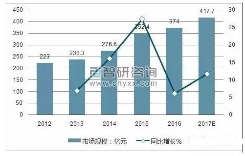 近年来,中国婴儿纸尿裤市场呈现快速增长的趋势,预计2017年婴儿纸尿裤市场规模将达417.7亿元,同比增长11.7%。