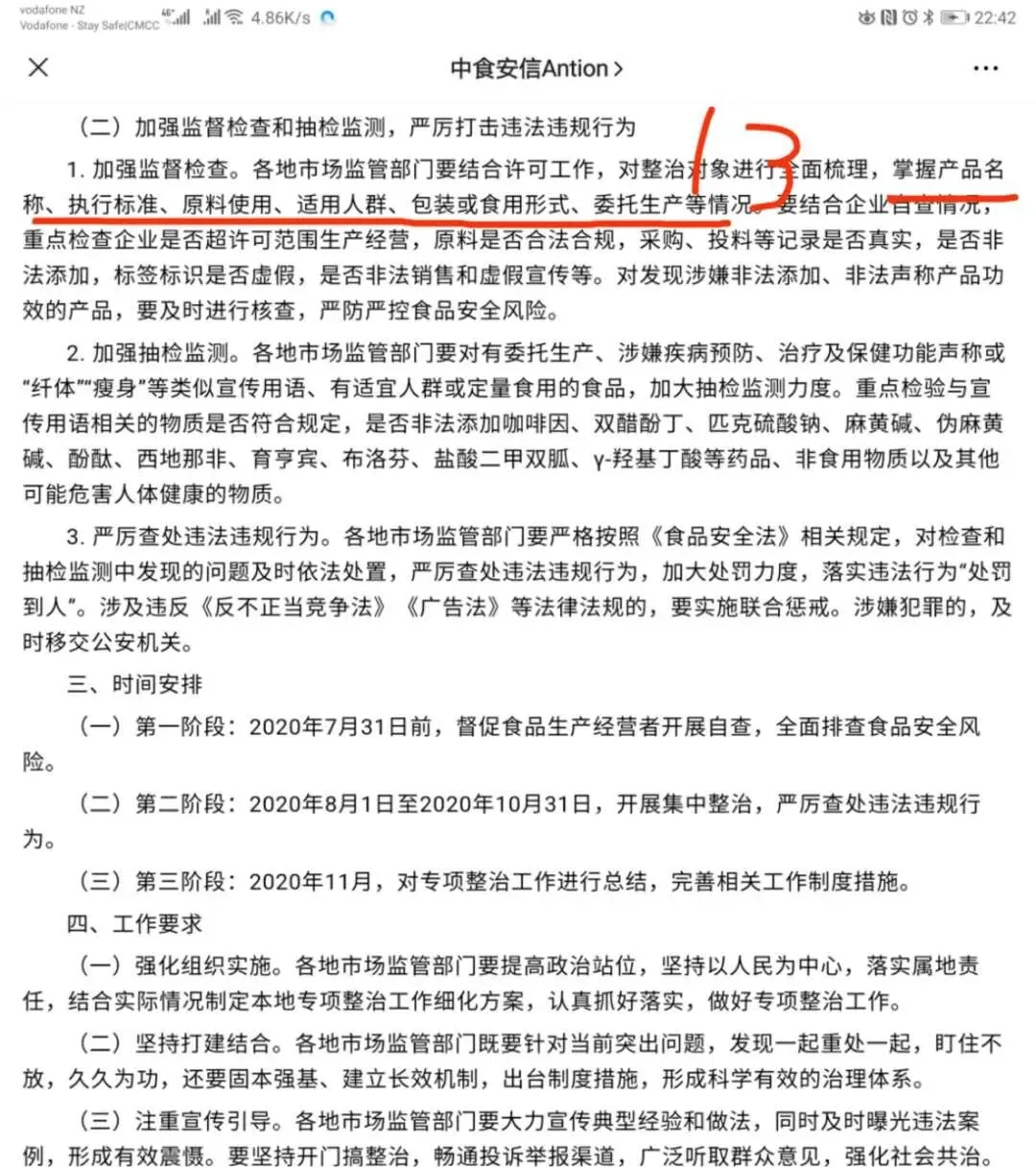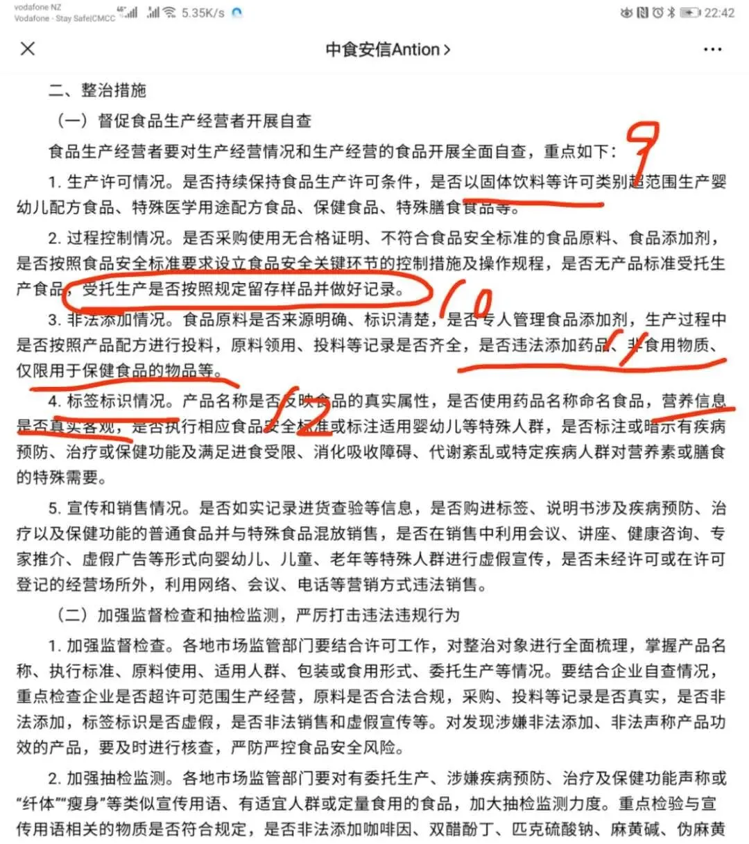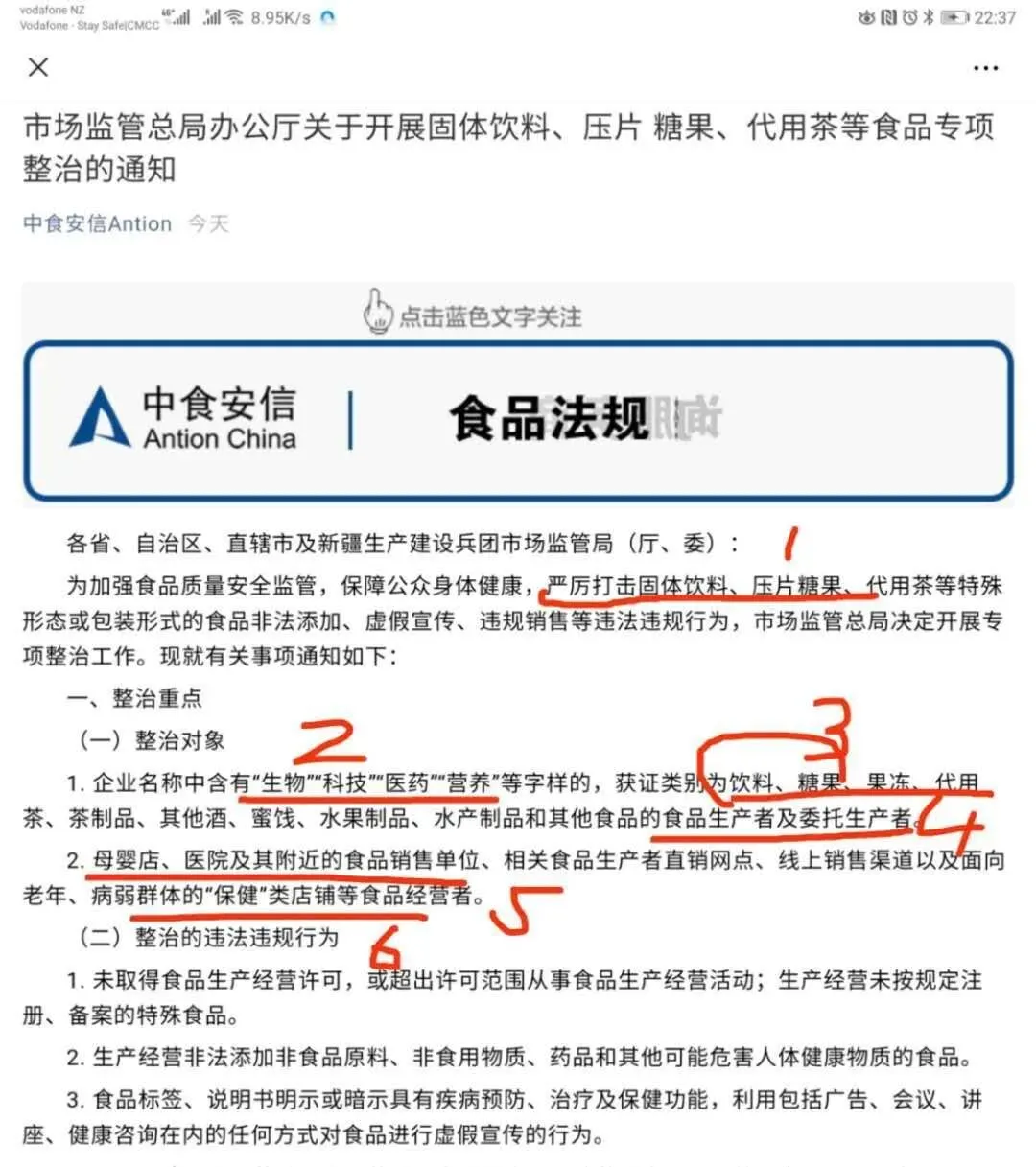 中婴网:伍董您好,非常高兴采访到您。首先想听听新西兰美大集团对于中国近期发生的固体饮料过度宣传导致的婴童营养品市场整顿的看法? 伍逸:好的,希望从1,直接间接现象和结果;2,企业应该如何做;3,品牌商应该如何做。 这三个方面简单表达一下。 这次事件是5月11日曝光,国家各级部门反应很快,一周内出台了相应的市场整顿文件,我记得5月16日国家出台了专项整治通知,我在新西兰收到的时候已经是晚上躺在床上了,立刻用手机对重点方向作了高亮,凌晨发给所有的客户。(图片参考结尾) 再于5月19日,发出正式的工厂解释说明文件给到全体品牌商,帮助他们应对市场监督人员的各种询问调查。 经过十几年的从业经验和对中国市场的观察,我认为这次事件将带来一个历史上中等程度的市场整顿,整顿的力度和意义,大于去年的天津保健品市场整顿,小于中国五年来对于婴配奶粉市场的整顿。 绝对要重视,花很大努力,才能度过这一关,有美好的明天。 中婴网:那么作为海外生产企业,美大要做哪些努力呢? 伍逸:生产企业是源头,不论好的产品,坏的产品,其实首先来自生产厂家。比如,如果生产厂家对产品审查极为严格,在成分,配方,标签宣称,品牌名称上认真负责,就不会生产出可能被误导用作婴幼儿主食的缺乏营养的产品了,市场也就不存在擦边球或者不合格的产品,也就没有出现悲剧的可能性。 所以国家势必先从生产企业入手,摸,排,查,控,理清源头。 第一条就是自律,把自己做的产品严查,不打擦边球,不但在正常的情况下是合规产品,甚至在被用在错误的方式使用,被误导宣传时,该产品的规格,营养,宣称,也要尽可能的避免发生重大的安全状况。不要给别人误导你的机会,否则作为生产企业就难逃一劫。 比如我在18年参与新西兰政府制定乳铁蛋白营养补充剂法规,从产品名称规范,规格规范,成分规范等方面,确保按照我们这个规范生产出的产品,产品就不可能被严重误导。 第二条,就是对品牌商透明,根据治理整顿通知,未来,生产企业要向品牌商主动披露更多生产详情,使品牌商,市场对产品有更高的知情权,对产品有更强的把控力度。这就要求企业全体部门岗位整体素质要提升,全部人员都要懂得生产,基本质量以外的各种法规问题,对于海外企业,更是要对目标市场,比如中国市场需求,风险,法规有全面深度的理解。同时要透明,详尽的整理给品牌商,市场关于生产企业情况,生产工艺,投料细节,配方细节,检验报告等大量信息,这些信息都要长期经得住考验,如果有企业胆敢弄虚作假,终生就会被市场质疑,被政府质疑,被员工挑战。 我们将会整理出台一套对中国市场,品牌商负责的全套上游生产企业报告书。 第三条,企业就更要加大各方面的投入了。因为透明了嘛,你有多大的厂房,什么规格的洁净空间,你是自己买的厂房,还是临时租的,多少人员,都有什么资质,有哪些设备,哪些工艺,未来可能都要披露,那么小作坊黑箱操作的就要被淘汰了嘛。作为海外企业,中国消费者以前看不到企业实际情况,只能从工厂名称或者简单照片认识工厂的情况,逐渐会得到改变。规模大,正规,透明,对各类事件能负责的企业,不会跑路走人的,会有更好的优势。 我们将会持续巨大的软硬件投入规模,保持这方面的优势。 第四条,企业要给品牌商在特殊情况下的支持,比如价格,条件,周期,起订量等等。帮助客户渡过难关,这方面就不细说了。 伍逸:品牌商和工厂是唇齿相依的关系,我衷心的祝愿我们的每个品牌商都能顺利的度过这次暴风雨 ,但这并不容易,需要做到一下三点。 第一,