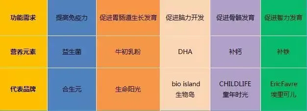 产品功能的细分,让妈妈们接受了不同孩子的成长阶段相对应的该补充什么元素的保健品科普,有助于打开保健品的市场。