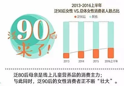 母婴用品消费人群的特征也是改变这个局势的关键。80、90后父母成长阶段接触物品范围更广、种类更多以及同步化的特征,他们的育儿意识越强,营养品越来越受到关注,她们对产品的需求更细腻,对科学技术的了解相对更深,对孩子不仅仅只是单一的健康,智力身心全方面的更好的发育需求也是尤为重要,从而更多的80、90后妈妈关注到了营养品。