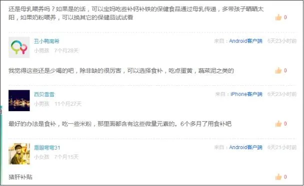 通过社区我们也发现,现在的8090妈妈普遍会带宝宝到医院测试微量元素,有缺乏的元素,首选是食补,其次就是营养品;推崇在科学指导下给宝宝补充营养元素。