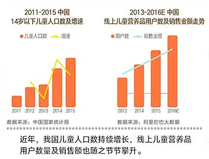 在较早之前,消费者购买营养品更多的是通过实体店导购的推荐,渠道较为单一,但近几年随着母婴电商渠道的逐渐成熟,线上购买的便捷与营养品的科普推广,正正是婴童营养品打入市场的一个催化渠道。数据统计,线上儿童营养品用户数及销售全额走势正正是出于逐年上升趋势。