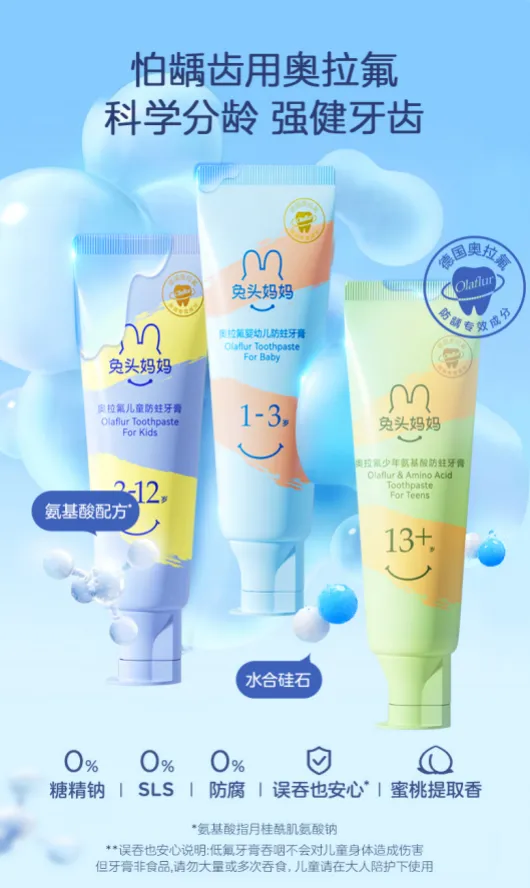 ⏩产品名:兔头妈妈奥拉氟氨基酸牙膏