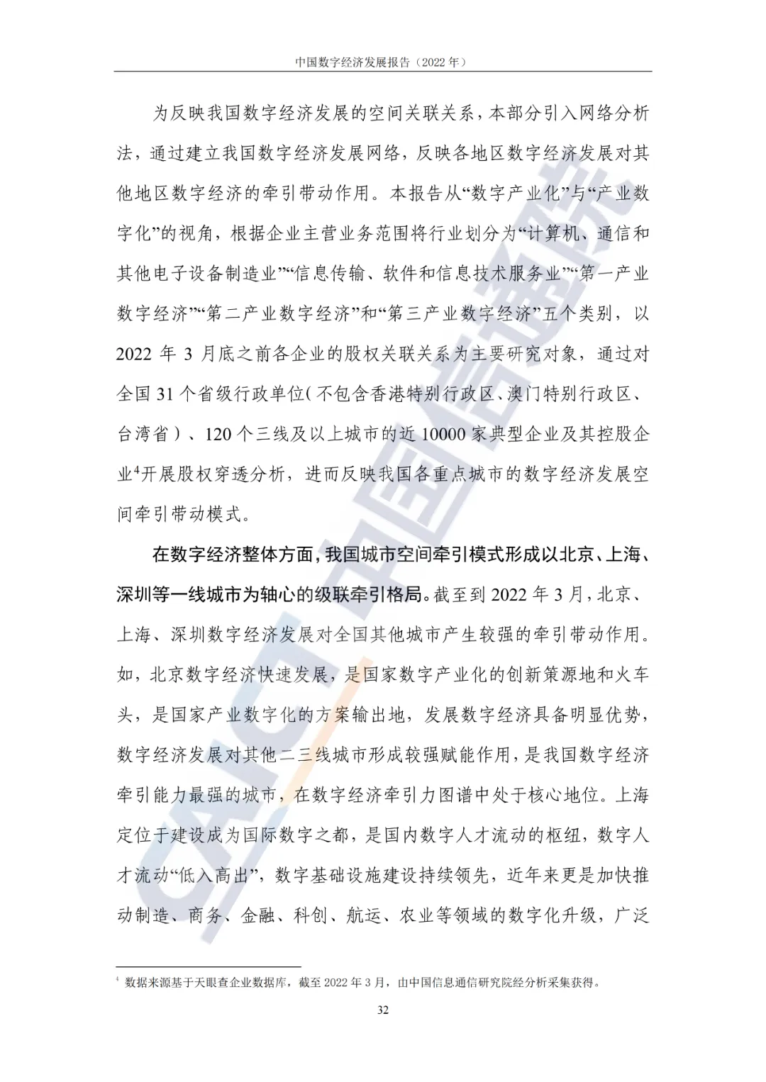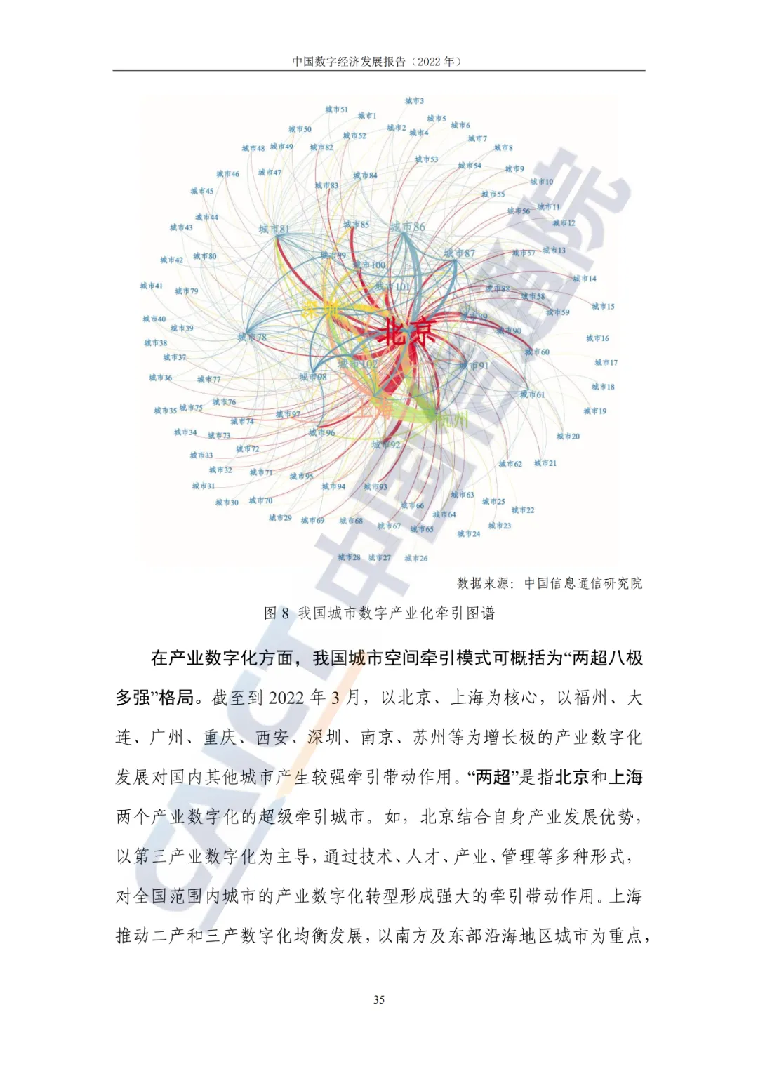以北京、上海、深圳等一线城市为轴心的级联牵引格局,三个城市数字经济发展对全国其他城市产生较强的辐射带动效应。
