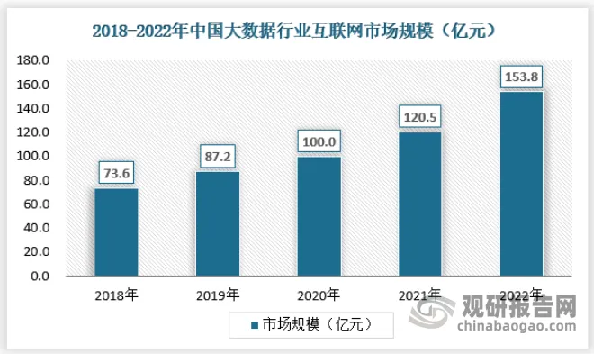 互联网公司是大数据应用的主要推动者之一。它们通过采集、分析大量用户数据,来提供更好的服务和产品,以及改进营销和销售策略。随着我国互联网产业的蓬勃发展,2022年互联网市场规模达到153.8亿元。