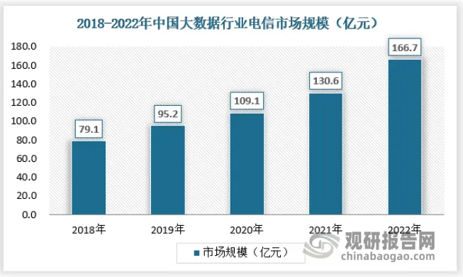 随着互联网的飞速发展,大数据成为信息时代的核心资源。而电信业作为信息社会的基础设施之一,也得以受益于大数据技术的应用。2022年电信市场规模达到166.7亿元。