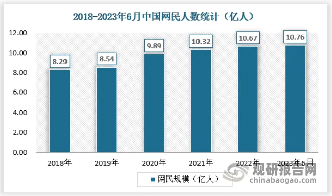 大数据从个人用户角度看最重要的便是提供个性服务,随着中国网民规模的扩大,大数据潜在需求市场不断扩大。据中国互联网络信息中心发布,截至2023年6月,我国网民规模达10.79亿人,互联网普及率达76.4%。