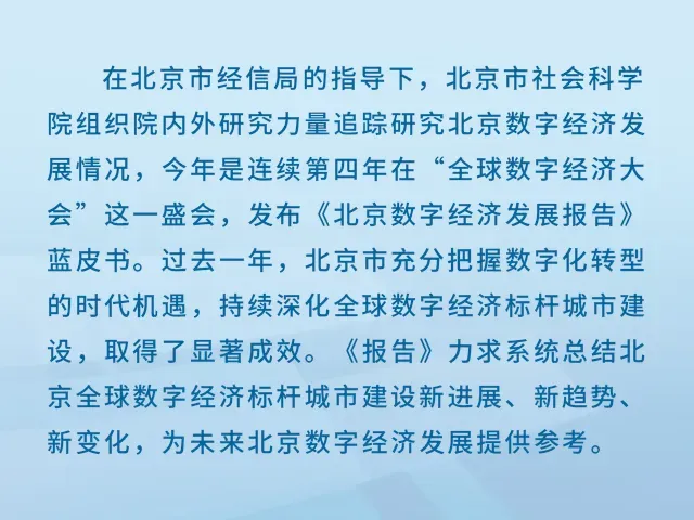 北京市社会科学院及《北京数字经济发展报告》课题组将继续追踪全球数字经济标杆城市建设情况,深化数字经济标杆城市理论与鲜活实践经验的研究,为助力北京数字经济高质量发展贡献智库力量。