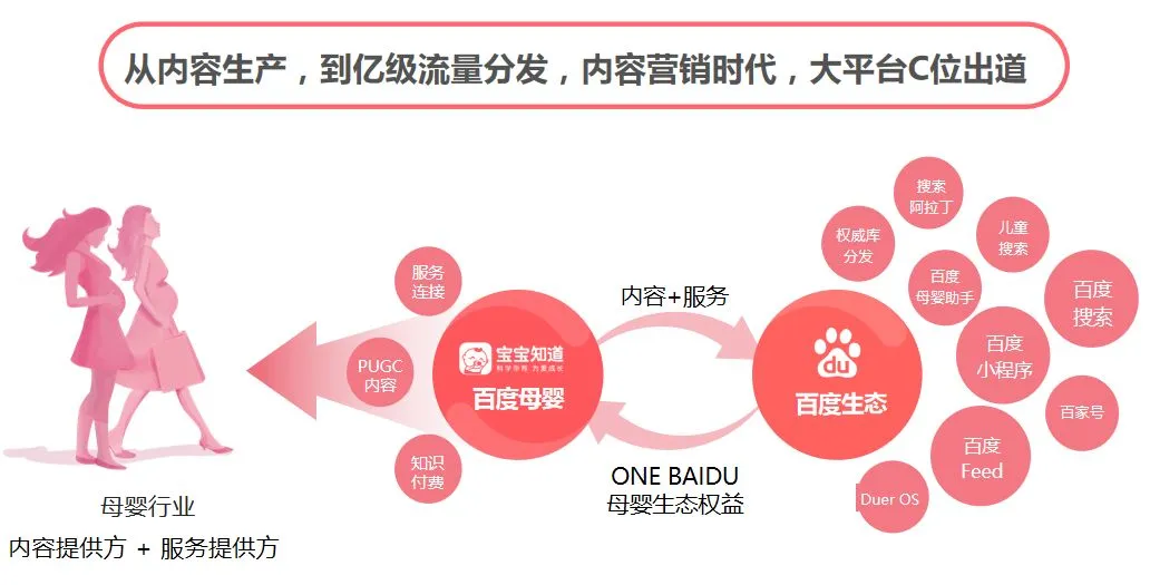 从内容生产,到亿级流量分发,内容营销时代,宝宝知道始终稳占C位,为品牌企业提供高效的解决方案。根据用户相关需求,宝宝知道形成的40个细分母婴场景,则体现了其强大的母婴场景化能力。基于百度平台大量用户行为数据洞察指导内容生产,并且结合AI技术,基于消费者理解,百度的人工智能营销(Baidu AI Marketing)可满足营销需求的商业/用户产品,赋能品牌企业营销。