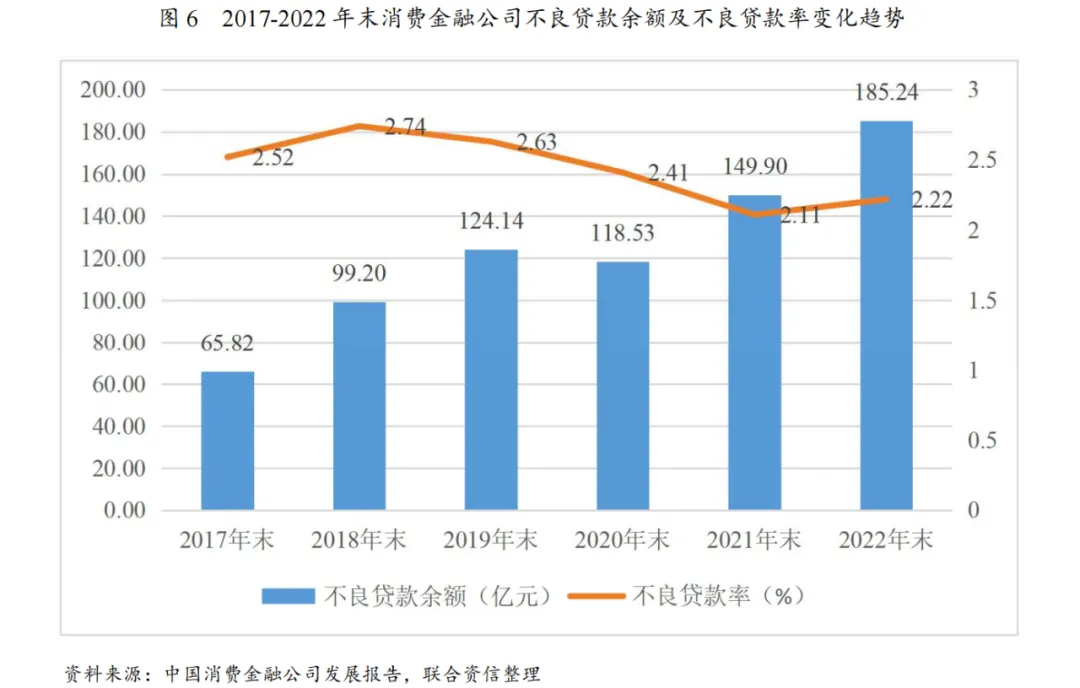 互联网贷款新规、利率上限、“断直连”等政策对于消费金融行业的影响逐步显现,2022年以来人民币消费贷款增速较为缓慢,整体消费金融行业发展趋向长远、合规、健康的方向。随着各项政策的持续刺激以及经济增速逐步回稳,2023年市场需求呈现一定回暖趋势,整体消费需求和市场有望得以逐步修复。银行系消费金融公司是目前现存和申设消费金融公司的主流,消费金融公司资产规模保持增长但增速相较2021年疫情短暂缓解时有所下降。消费金融公司产品同质化程度较高,2022年以来继续推进线上化转型,但第三方引流模式仍占有较高比重,2022年以来消费金融公司不良贷款规模较快增长,但整体信贷资产质量相对稳定,拨备水平有所下降,仍具有较强风险抵补能力。消费金融公司对同业借款渠道依赖程度较高,融资渠道仍有待进一步拓宽,其中头部消费金融公司融资渠道的可获得性以及资金成本优势明显。得益于资产端业务扩张带来利息收入水平提升,叠加信贷资产质量较为稳定使得减值损失计提对利润实现的影响相对有限,2022年以来消费金融公司整体盈利水平较好,但业绩分化较为明显;股东增资力度明显提升,同时监管明确非银行金融机构资本类债券储架发行机制,外源性资本补充渠道或将得到一定拓宽,考虑到业务持续扩张对资本所产生的消耗,以及资本补充渠道目前仍较为有限,消费金融公司资本补充压力犹存。