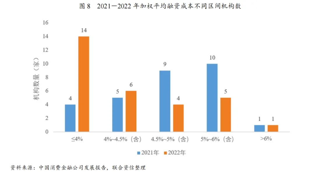 ➢ 消费金融公司资金来源较单一,相较于金融租赁公司、汽车金融公司等其他金融机构融资成本较高,同时易受市场资金成本波动影响;